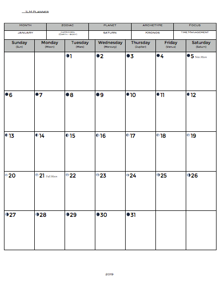 2019 Moon Planner